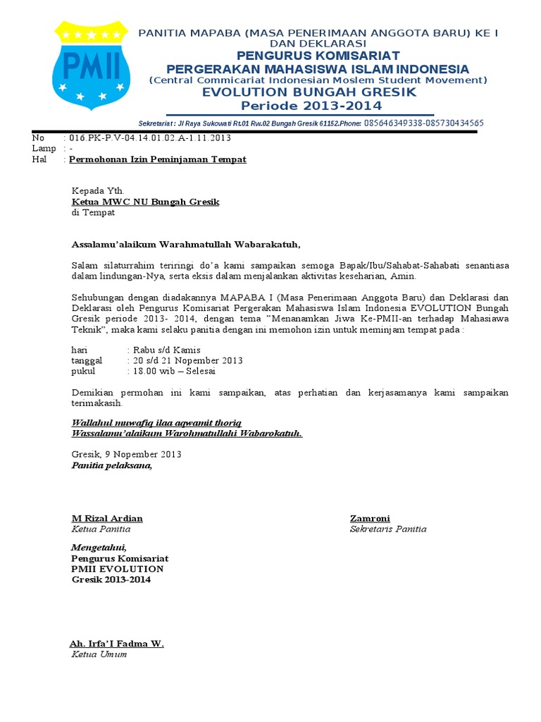 Contoh Surat Pmii