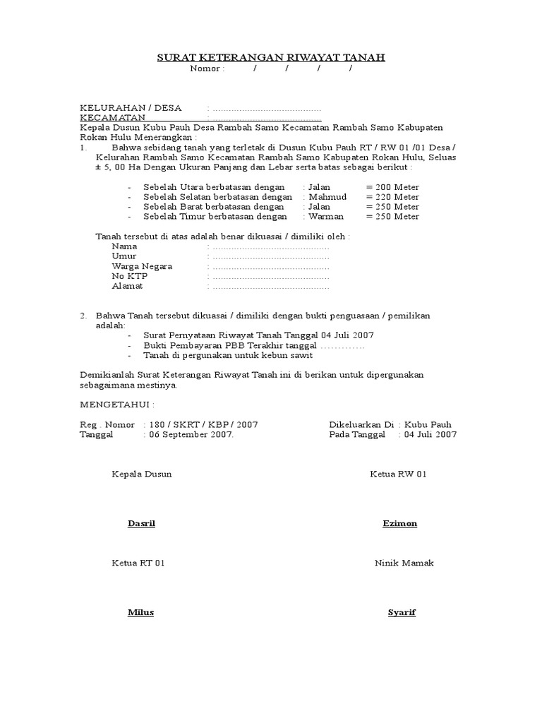 Surat Keterangan Riwayat Tanah Download Surat Keterangan Riwayat Tanah Download format surat lain. Contoh surat keterangan riwayat tanah dari desa contoh surat.